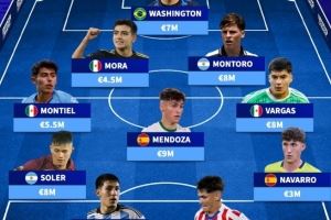 U20世界杯身价最高阵:总身价6080万欧,莫拉、门多萨在列
